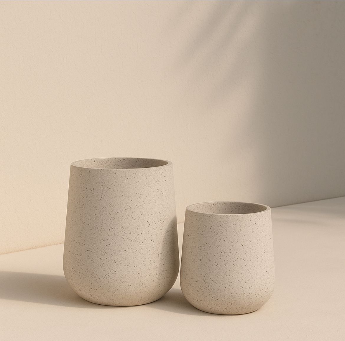 rigel beton saksı, silindirik beton saksı seti, modern saksı modelleri, terrazzo saksı, bej beton saksı, minimal saksı, iç mekan saksı tasarımı, BAMS DECO saksı, dış mekan saksı modelleri, el yapımı beton saksı